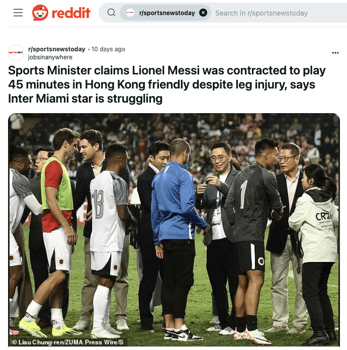 February 4, 2024, Hong Kong, China: In Hong Kong, Secretary for Culture, Sports and Tourism, Kevin Yeung (center, a man presenting a medal) who is primarily in charge of organizing the visitation of Lionel Messi to Hong Kong, together with Financial Secretary Paul Chan (R) and HKSAR Chief Executive Lee Ka-chiu (far left) during presentation ceremony at Hong Kong Stadium after Inter Miami won friendly match against Hong Kong Team on Sunday. Hong Kong official responsible for organizing HK Tatler EXFEST, inviting international football superstar, Lionel Messi to play friendly match in Hong Kong is under barrage of media inquiry regarding the fiasco which occurred on Sunday’s match, where biggest focus of attention, Lionel Messi did not participate in the actual football game but sit out the whole match on the bench. The incident have triggered an outcry among the local, and particularly the visiting Messi’s fans by the thousand, who booed at the owner of Inter Miami, David Beckham and chanting for refund in the end of the match. (Credit Image: © Liau Chung-ren/ZUMA Press Wire)