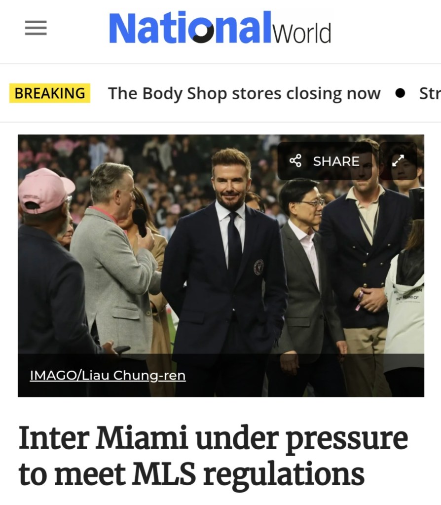 February 4, 2024, Hong Kong, CHINA: In Hong Kong, current owner of Inter Miami CF, David Beckham is interviewed by the media after the presentation ceremony as HKSAR Chief Executive Lee Ka-chiu walking past behind him. Beckham is booed in Hong Kong Stadium after the friendly match between visiting Inter Miami and the hosting Hong Kong Team on Sunday, as star player Lionel Messi was absent from the football game resting at the bench throughout the match. The upset football fans, majority of them practically Messi’s supporters, called for refund after the game is over. (Credit Image: © Liau Chung-ren/ZUMA Press Wire)