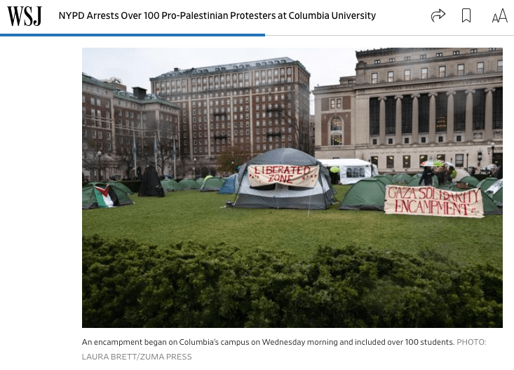 April 17, 2024, New York, New York, USA: As Columbia University prepares for commencement, students have set up an encampment of nearly 60 tents to demand that the institution divest from Israel. (Credit Image: © Laura Brett/ZUMA Press Wire)