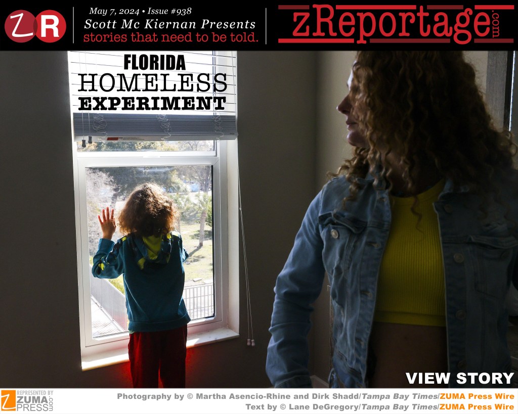 Scott Mc Kiernan Presents zReportage.com Issue #938 Story of the Week: Published TUESDAY May 7, 2024: ‘FLORIDA HOMELESS EXPERIMENT’ by ZUMA Partner newspaper The Tampa Bay Times photo-journalist’s Martha Asencio-Rhine and Dirk Shadd: ‘They’re here!’ she shouted, raising both arms. ‘Oh, they’re finally here!’, Janet Stringfellow is CEO of Florida’s Volunteers of America had long envisioned a place where people could move off the streets. As the US Supreme Court wrestles with whether people should be arresting for sleeping outside, and Florida considers setting up more tent cities, a new project in downtown St. Petersburg opened, offering 25 new apartments to homeless people to help them start over. In this social housing experiment, homeless people get an apartment and support. Everyone is hopeful, excited to help, but they’re also wondering: Will this work? Welcome to ‘FLORIDA HOMELESS EXPERIMENT’