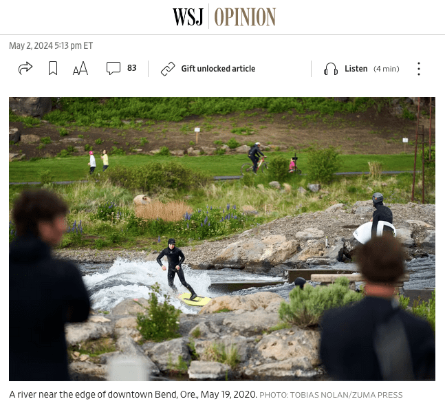 May 19, 2020, Bend, Oregon, USA: As many covid-19 related restrictions begin to be relaxed and States go about reopening, recreation goers are flocking to the outdoors. Here, urban surfers ride a man-made river wave on the edge of downtown Bend, Oregon as runners and cyclists pass in the background. (Credit Image: © Tobias Nolan/ZUMA Wire)
