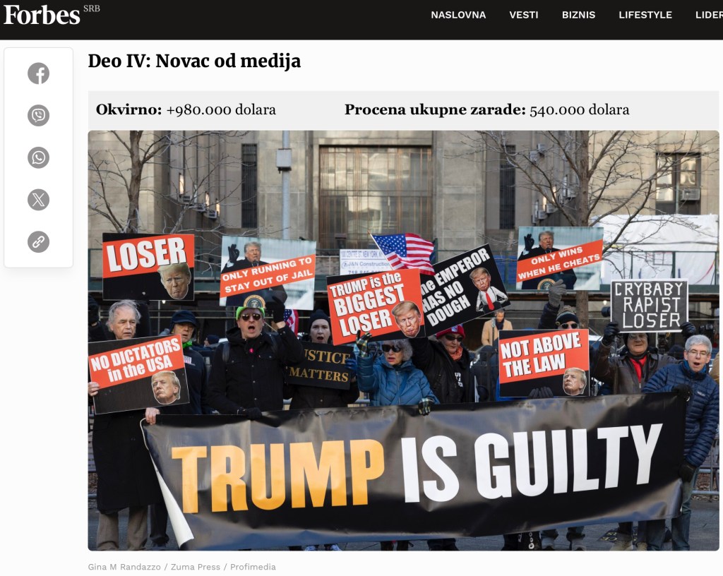 March 25, 2024, New York, New York, USA: Protesters with the activist group Rise & Resist hold signs and banners outside the Manhattan Criminal Courthouse waiting for Former President Donald Trump’s arrival at a hearing in the hush money Stormy Daniels case. A banner reads ”Trump is guilty.” Protesters hold signs that read ”The emperor has no dough” ”Only running to stay out of jail” ”No dictators in the USA” ”Trump is the biggest loser” ”Not above the law” ”Only wins when he cheats” ”Crybaby Rapist Loser. (Credit Image: © Gina M Randazzo/ZUMA Press Wire)