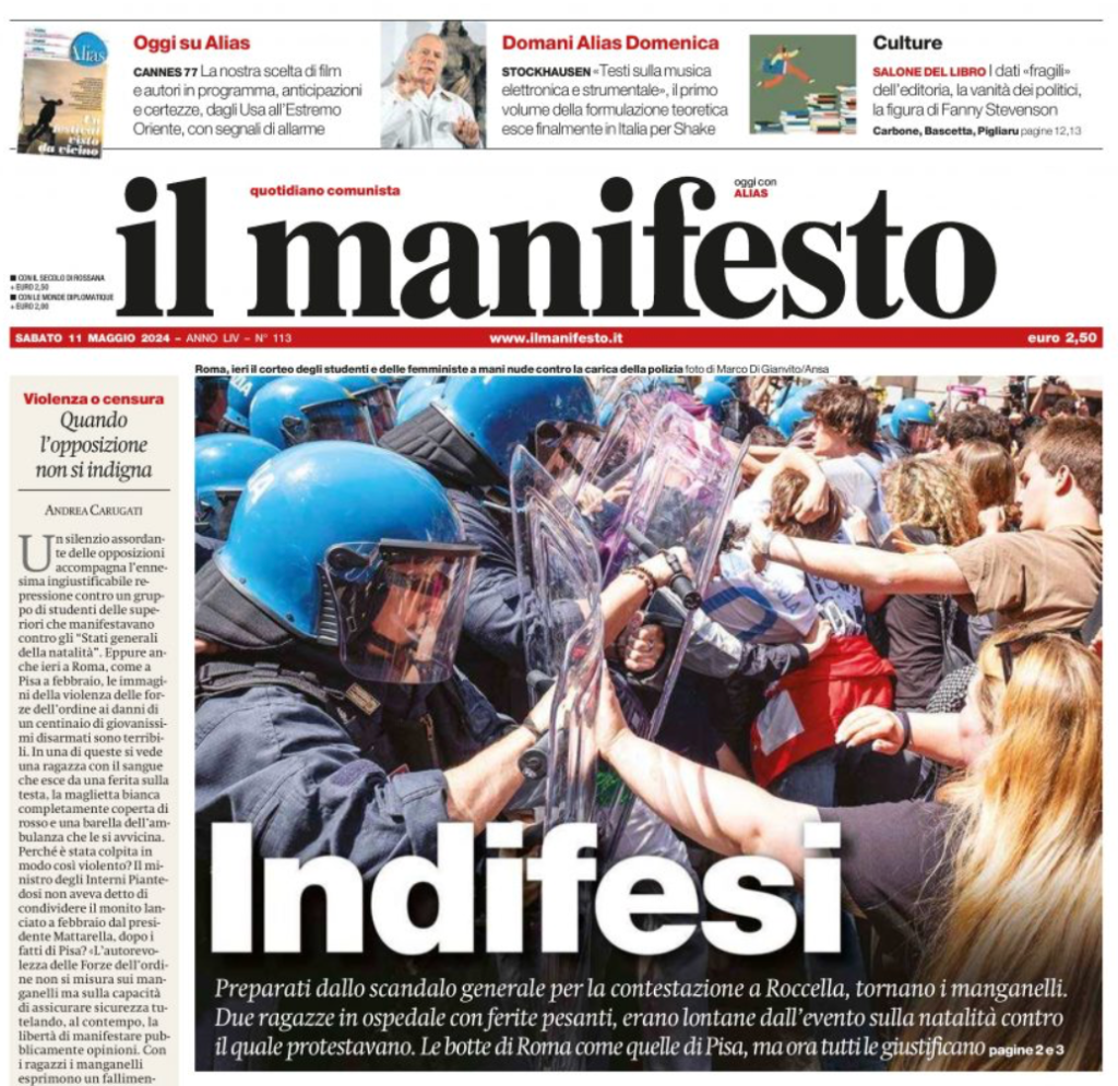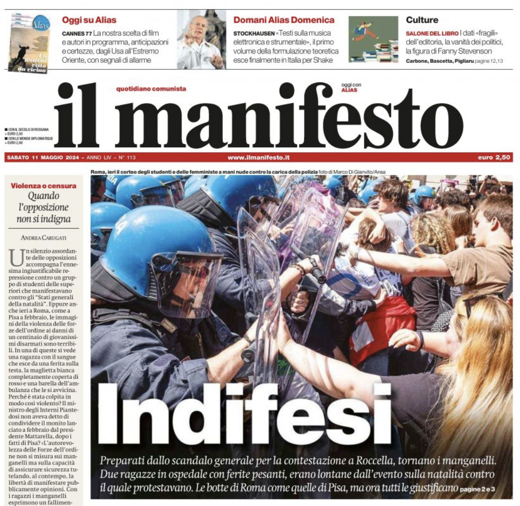 May 10, 2024, Rome, Italy: ”My body my choice”, junior and university students protest in Rome against the ”anti-abortion and anti-feminism policy of the government”. Protesters, trying to reach the venue of the birth rate conference, are blocked by the police. (Credit Image: © Marco Di Gianvito/ZUMA Press Wire)