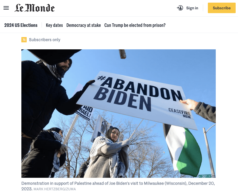 December 20, 2023, Milwaukee, Wisconsin, USA: Protesters on behalf of Palestine gather on a street in Milwaukee, Wisconsin across from where President Joe Biden will be speaking Wednesday December 20, 2023. (Credit Image: © Mark Hertzberg/ZUMA Press Wire)