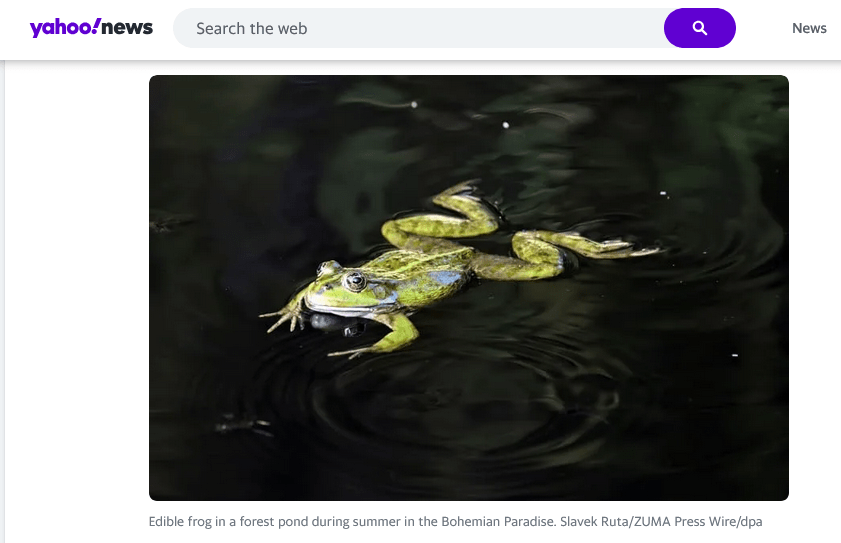 ZUMA’s Slavek Ruta on Yahoo! News Posted by ZUMAPRESS.com on July 11, 2024 Posted in: ZUMALAND. Leave a comment July 2, 2024, Humprecht, Czech Republic: Edible frog in a forest pond during summer in the Bohemian Paradise, Czech Republic. (Credit Image: © Slavek Ruta/ZUMA Press Wire) Scott Mc Kiernan, Founder & Editor-in-Chief, ZUMA Press Share this: Click to share on Facebook (Opens in new window) Facebook Click to share on LinkedIn (Opens in new window) LinkedIn Click to share on X (Opens in new window) X Like Loading... Related Posts navigation ← ZUMA’s Carlos Chiossone on the New York Post ZUMA’s Slavek Ruta in ‘Weekly Beasts’ Gallery for Il Post →