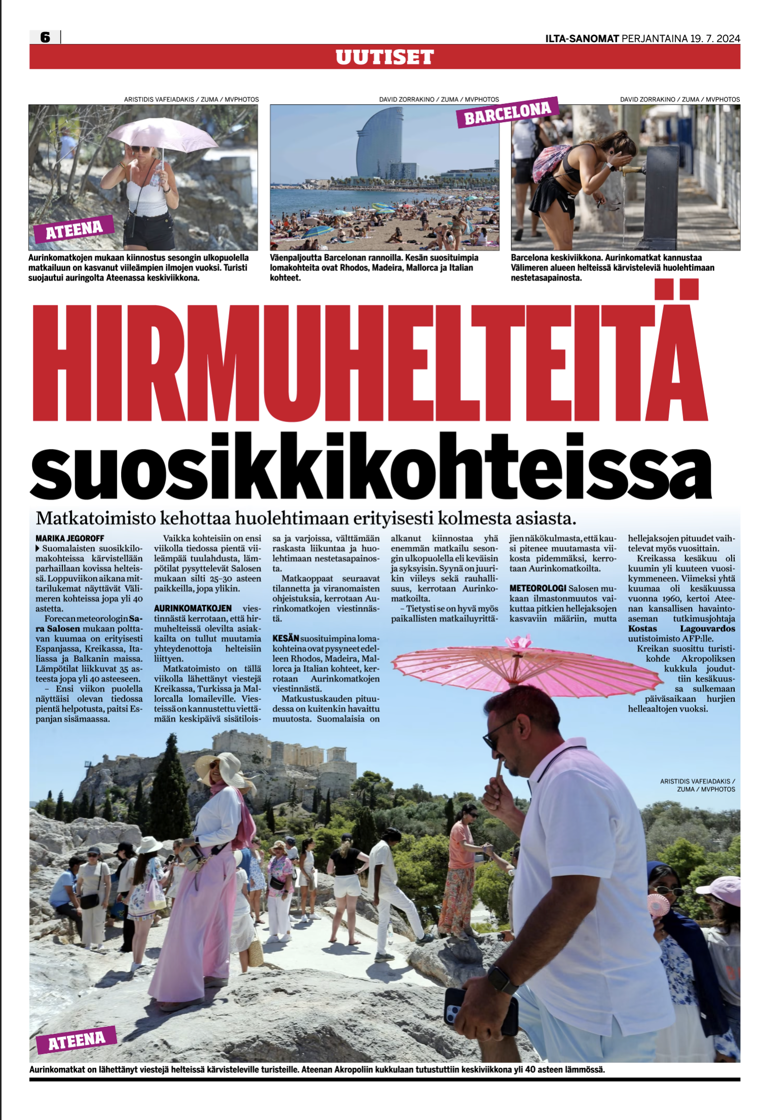 Image Top Left: July 17, 2024, Athens, Greece: Tourists hold their umbrellas to avoid the sun. The Culture Ministry announced that the archaeological site on the Acropolis Hill, Greece’s most famous tourist attraction, will be closed from 12 p.m. to 5 p.m. due to the heat wave. The heat is expected to push temperatures in Athens and other parts of the country above 40 degrees Celsius. (Credit Image: © Aristidis Vafeiadakis/ZUMA Press Wire)