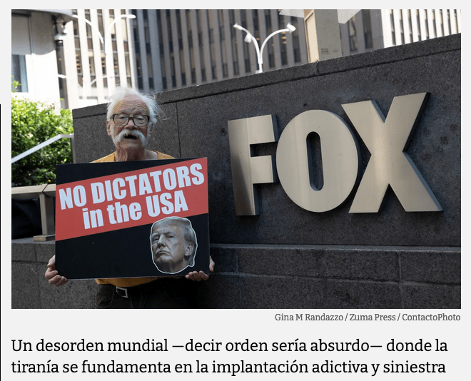 June 4, 2024, New York, New York, USA: DANA BEAL holds a sign with an image of former President Trump that reads ‘NO DICTATORS IN THE USA.’ Protesters hold signs and banners outside of Fox News Channel demonstrating against the network’s ‘rigged trial’ coverage of the Trump hush money case and verdict which found former President Trump guilty on 34 counts. Demonstrators come to Fox News headquarters weekly for a Truth Tuesdays protest. (Credit Image: © Gina M Randazzo/ZUMA Press Wire)
