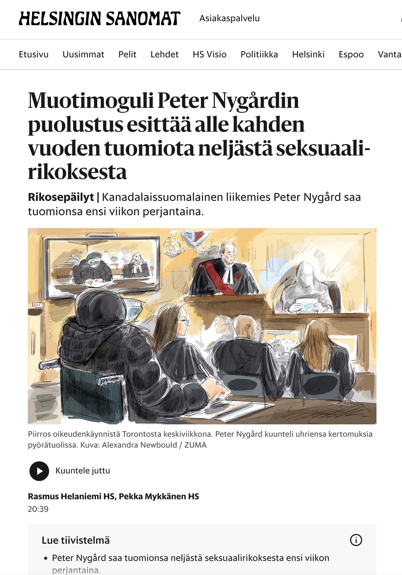 July 24, 2024, Toronto, On, CANADA: Former fashion mogul Peter Nygard, Gerri Wiebe, Justice Robert Goldstein, Neville Golwalla, Ana Serban, witness anonymous are shown in this courtroom sketch in Toronto on Wednesday July 24, 2024. One of the women sexually assaulted by Nygard teared up in court Wednesday as she described how the attack decades ago ”tainted” her life, eroding her mental health, interfering with her career and deterring her from forming long-term relationships. (Credit Image: © Alexandra Newbould/The Canadian Press via ZUMA Press)