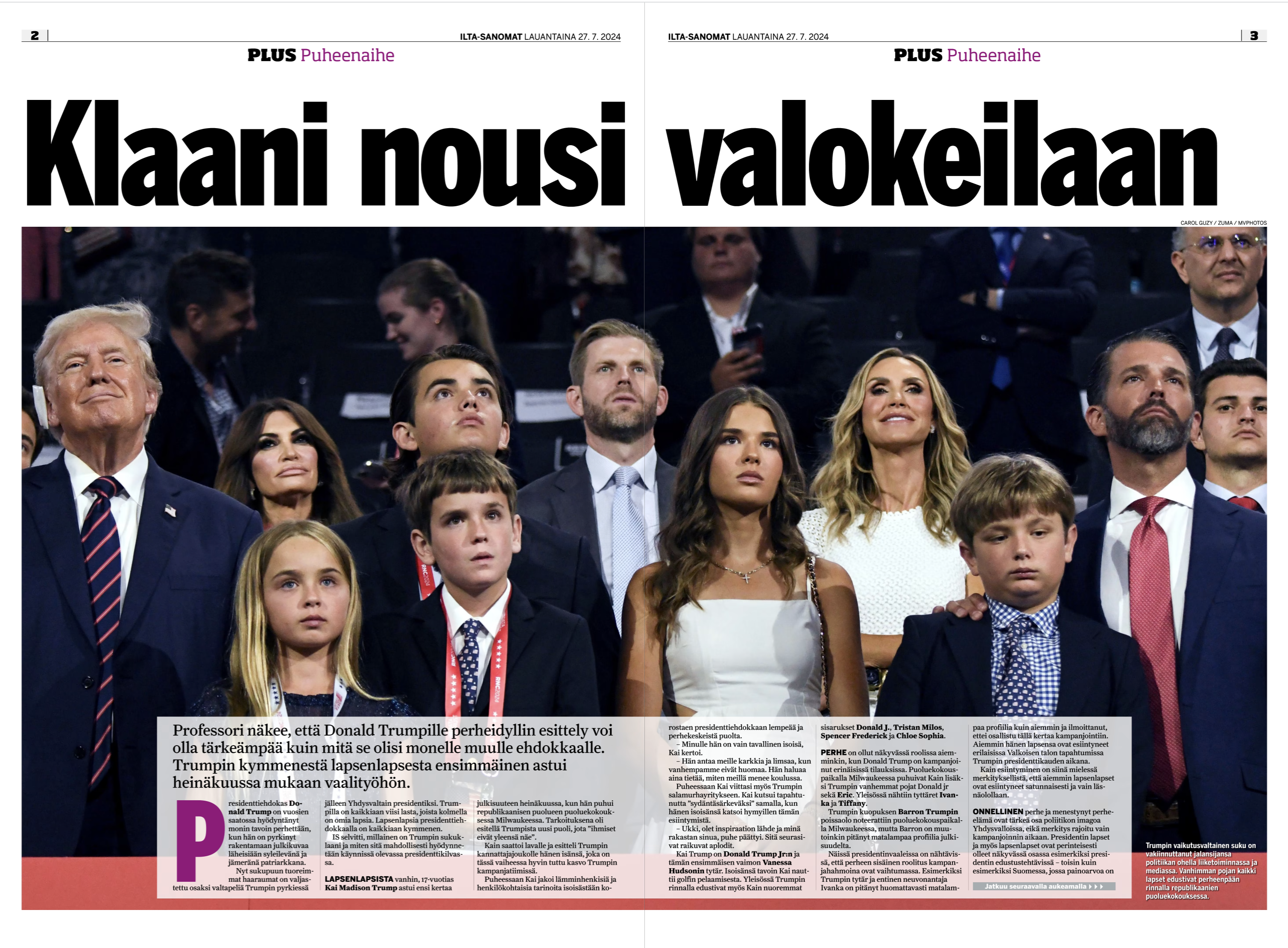 July 17, 2024, Milwaukee, Wi, USA: RNC 2024: Day 3: Presidential nominee DONALD TRUMP stands with family members including his granddaughter KAI TRUMP in white dress front, who spoke as the Republican National Convention continues at the Fiserv Forum in Milwaukee WI on July 17, 2024. (Credit Image: © Carol Guzy/ZUMA Press Wire)