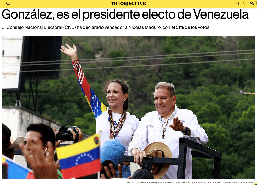 July 13, 2024, Valencia, Carabobo, Venezuela: July 13, 2024. Political leader, Maria Corina Machado (L) and Edmundo Gonzalez Urritia (R), presidential candidate of the opposition during his campaign visit to the city of Valencia, Carabobo state. (Credit Image: © Juan Carlos Hernandez/ZUMA Press Wire)
