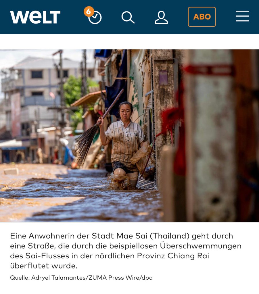 September 15, 2024, Mae Sai, Chiang Rai, Thailand: A local resident of Mae Sai town walks through a street inundated by unprecedented flooding resulting from the overflow of the Sai river, located in Thailand’s northern Chiang Rai province. Several Thai provinces, most notably Chiang Rai, have been inundated by the worst flooding the region has seen in over 50 years, leaving tens of thousands impacted and at least 10 dead. (Credit Image: © Adryel Talamantes/ZUMA Press Wire)