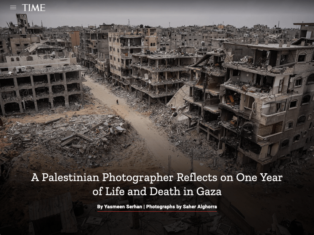 ZUMA Photographer Saher Alghorra has an 11 image spread and interview in TIME magazine speaking on his coverage of the year long, and ongoing, destruction in Gaza.
