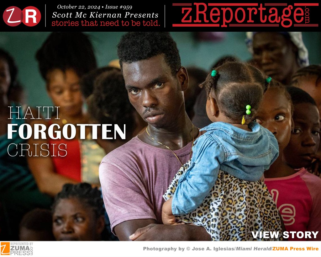 Scott Mc Kiernan presents zReportage.com Issue #959 Story of the Week: Published: TUESDAY October 22, 2024: ‘HAITI: Forgotten Crisis’ by ZUMA Press represented Miami Herald’s photographer Jose A. Iglesias: Ravaged by violence and poverty, one of the most beautiful, yet poorest countries in the world clings to the hope that things will get better. Haiti has become paralyzed as violent gangs clash over territory. The country has faced years of instability, but the situation has worsened since the July 2021 assassination of President Moise. It created a power vacuum which increased the influence of armed gangs. It is estimated they now control up to 80 percent of the capital, Port-au-Prince. Today in some of the most desperate areas of Haiti people live in near-famine conditions. Welcome to ‘HAITI: Forgotten Crisis’