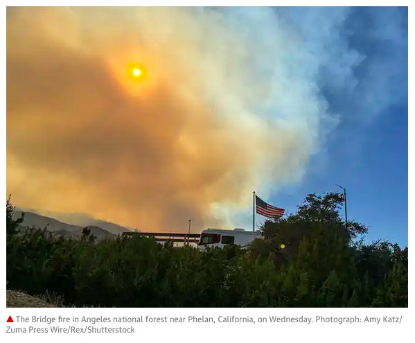 September 11, 2024, Phelan, California, USA: A plume of smoke created by the Bridge Fire fills the sky in Angeles National Forest, as seen from the desert just off the Pear Blossom Highway, between Llano and Phelan, California. (Credit Image: © Amy Katz/ZUMA Press Wire)