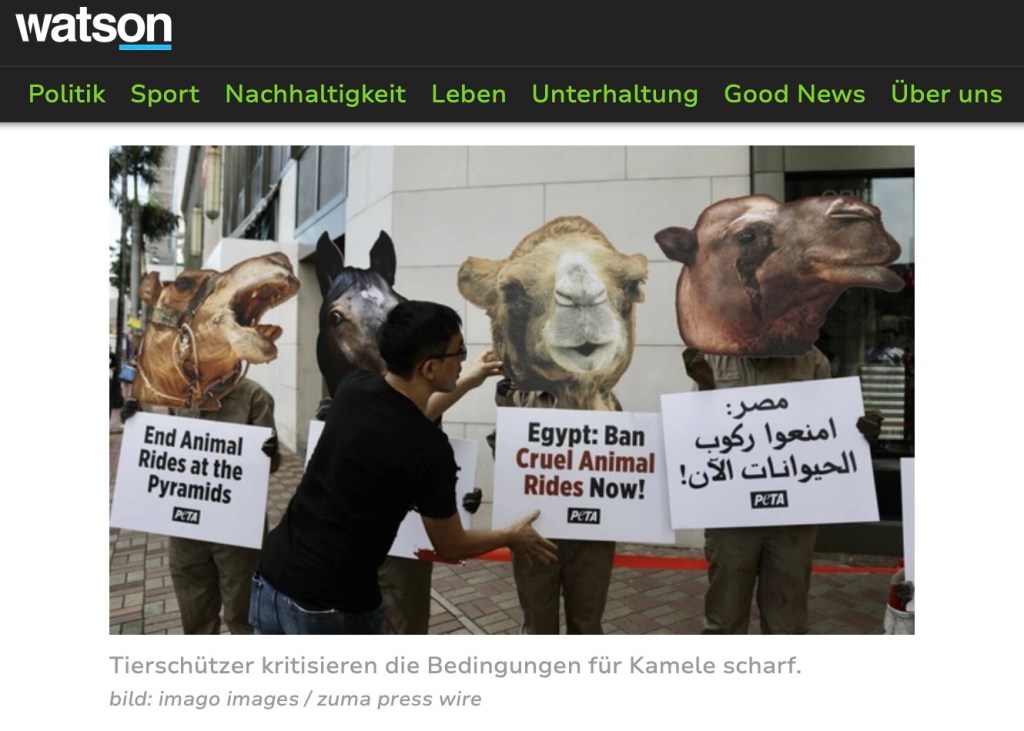 October 4, 2024, Hong Kong, China: Staff of the PETA Asia Pacific Office staged a protest outside The Egyptian Consulate General in Hong Kong condemning Egypt’s ongoing animal abuses, calling for a banning of animal rides at the Pyramid tourist sites at once. In Egypt, camels and horses are part of the tourist spots of Pyramids at Giza, where these animals are forced to engage in daily non-stop slavery without given water, food and rest, entertaining visitors by being ridden by tourists from morning until evening. (Credit Image: © Liau Chung-ren/ZUMA Press Wire)