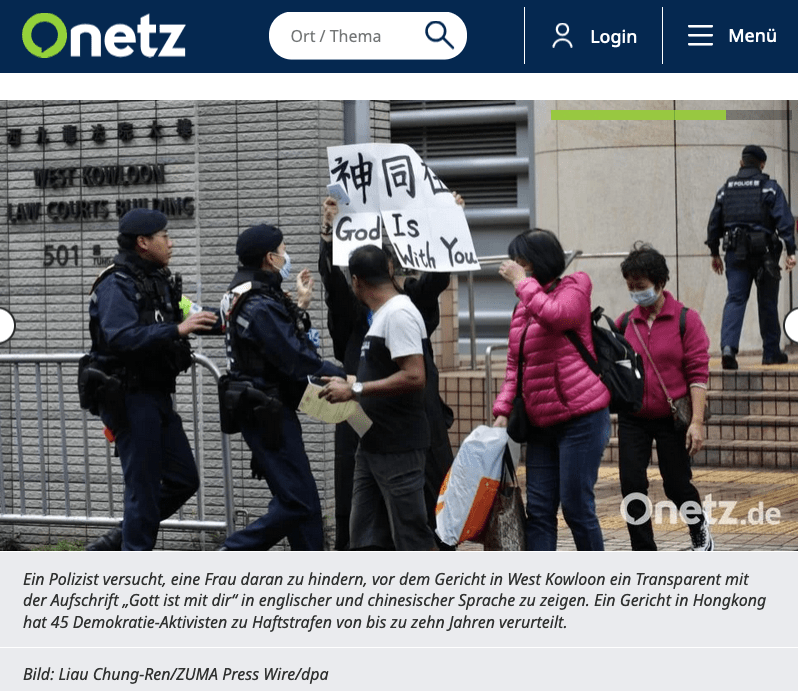 November 19, 2024, Hong Kong, China: In Hong Kong, outside West Kowloon Magistracy (High Court), a policemen rush to stop a woman from displaying banner written both in English and Chinese : (God is With You), an only gesture of protest and support for the Democratic defendants on the day of landmark trial, sentencing for 47 Hong Kong Democrats charged with ‘ subversion ‘ under National Security Law. (Credit Image: © Liau Chung-ren/ZUMA Press Wire)