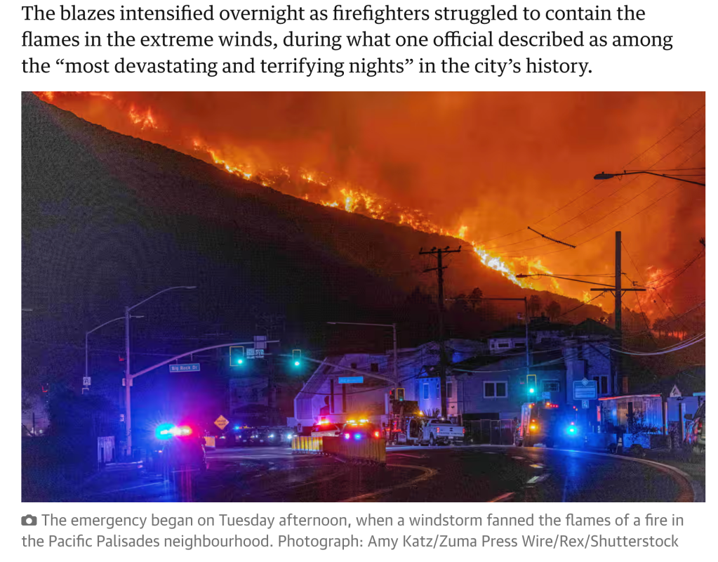 January 7, 2025, Malibu, California, U.S.A: Fire broke out on January 7, 2025 in the wealthy town of Pacific Palisades, on the edge of Malibu, due to unusually strong Santa Ana winds that exceeded 100 MPH, sending an inferno of orange and red flames to race down the mountain toward Pacific Coast Highway (PCH) in Los Angeles County. (Credit Image: © Amy Katz/ZUMA Press Wire)