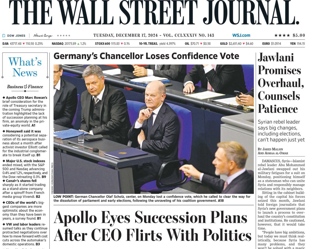 December 16, 2024, Berlin, Germany: German Chancellor OLAF SCHOLZ (C) on Monday lost a confidence vote, which he called to clear the way for the dissolution of parliament and early elections, following the unraveling of his coalition government at the Bundestag in Berlin. (Credit Image: © Frederic Kern/DDP via ZUMA Press)