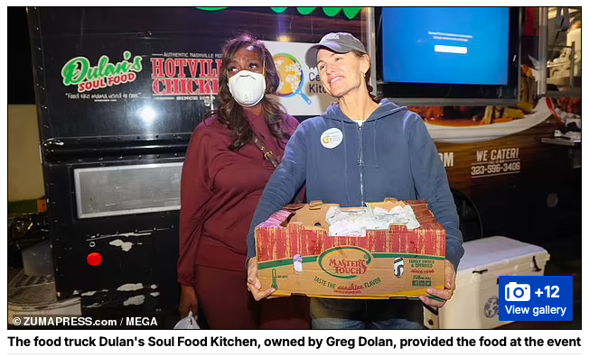 January 10, 2025, Pacific Palisades, California, USA: WCK Volunteer and Actress Jennifer Garner passes out bagels in front of the Food truck helping to prepare food for the World Central Kitchen (WCK). They are there to feed California fire victims and anyone else who come from a food truck owned by Greg Dolan, owner of Dulan’s Soul Food Restaurant and Catering Co., at the temporarily shut down Jack in the Box in the city of Altadena, which has been decimated by the Eaton fire. (Credit Image: © Amy Katz/ZUMA Press Wire)