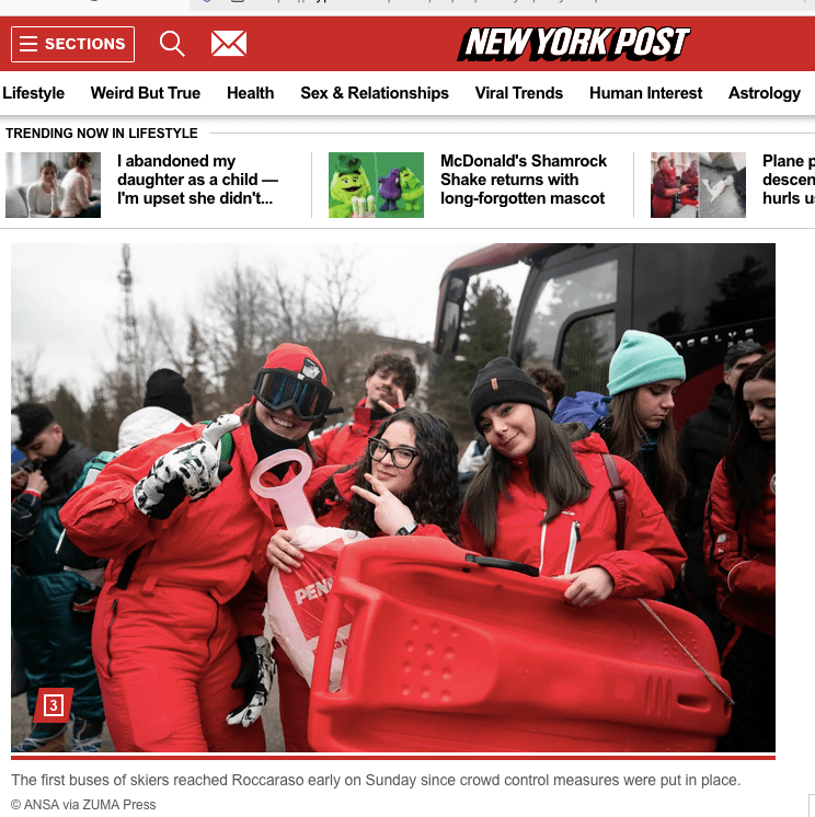 February 2, 2025, Roccaraso, Italy: The first buses of skiers reached the Abruzzo mountain resort of Roccaraso early on Sunday since crowd-control measures were put in place after thousands of daytrippers from the nearby Campania region recently invaded the small town, creating chaos on the slopes, extreme traffic snarl-ups and accusations of bad behavior, 02 February 2025. As part of the new emergency crowd control measures, the buses went through a post set up between nearby Castel di Sangro and Rioneto Sannico, and then were processed by police, Carabinieri officials and firefighters on the 17 State highway just outside the resort. Some 3,000 people are expected in the town on Sunday, local officials said. A maximum of 60 buses have been reportedly authorized at the resort, down from the 260 buses registered last Sunday. (Credit Image: © ANSA via ZUMA Press)