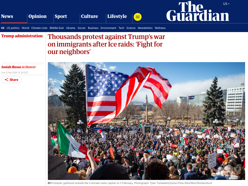 February 5, 2025, Denver, Colorado, USA: Protester gathered outside of the Colorado State Capital for the 50501 (50 protests, 50 states, one day) protest against the polices of the Trump administration. (Credit Image: © Tyler Tomasello/ZUMA Press Wire)