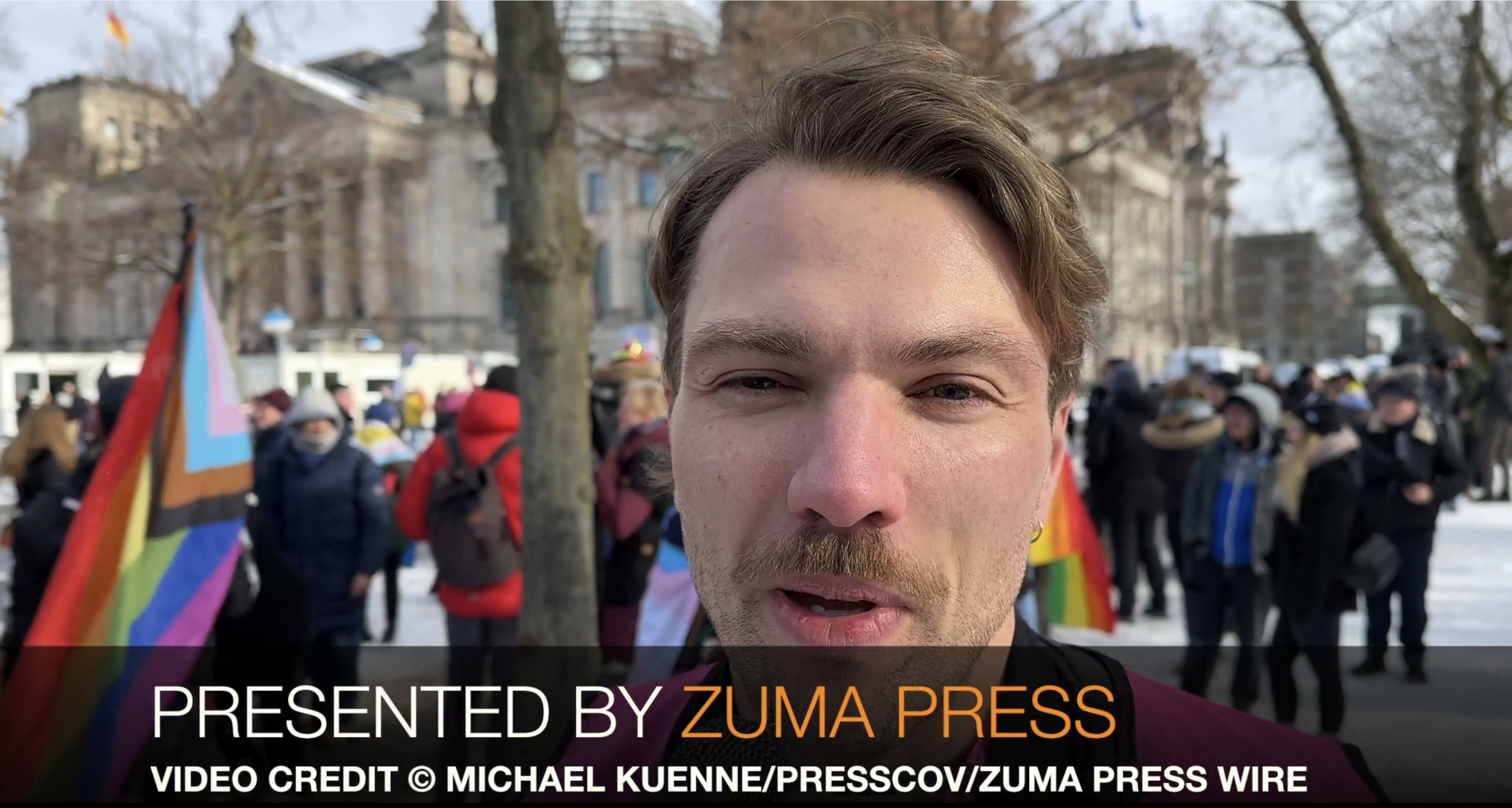 February 15, 2025, Berlin,Germany: Thousands of queer activists marched through central Berlin on Saturday, February 15, 2025, as part of the “Choose Love” campaign, a nationwide effort to defend LGBTQ rights amid concerns over rising far-right influence ahead of Germany’s federal election on February 23, 2025. In a soundbite, Christopher Street Day Berlin Pride board member Thomas Hoffmann stressed the protest’s urgency. Queer activist and drag artist Lillet Lube echoed that sentiment in a separate soundbite.