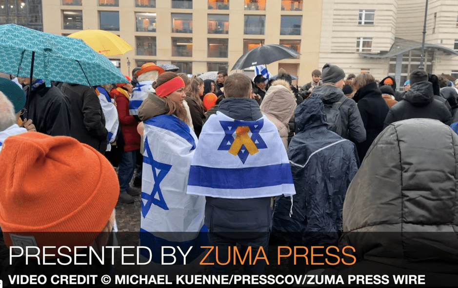 February 26, 2025, Berlin, Germany: The Brandenburg Gate in Berlin was illuminated in orange on Wednesday, February 26, 2025, as crowds gathered to mourn members of the Bibas family, who were killed in captivity after being taken by Hamas during the October 7 attack on Israel. The tribute, a powerful symbol of solidarity with Israel, drew people who laid down flowers and orange balloons in memory of Shiri Bibas and her two sons, Ariel and Kfir. Israeli Ambassador to Germany Ron Prosor attended the event, standing alongside mourners as they honored the victims.
