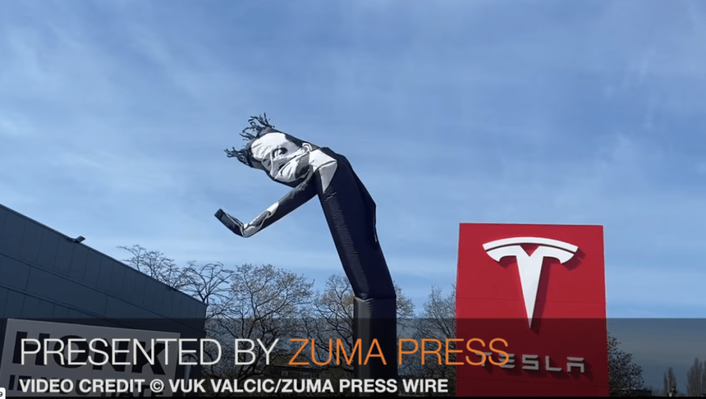 March 29, 2025, London, England, United Kingdom: Protesters gather outside the Tesla Centre in Park Royal during the Tesla Takedown Global Day of Action against Tesla and Elon Musk.