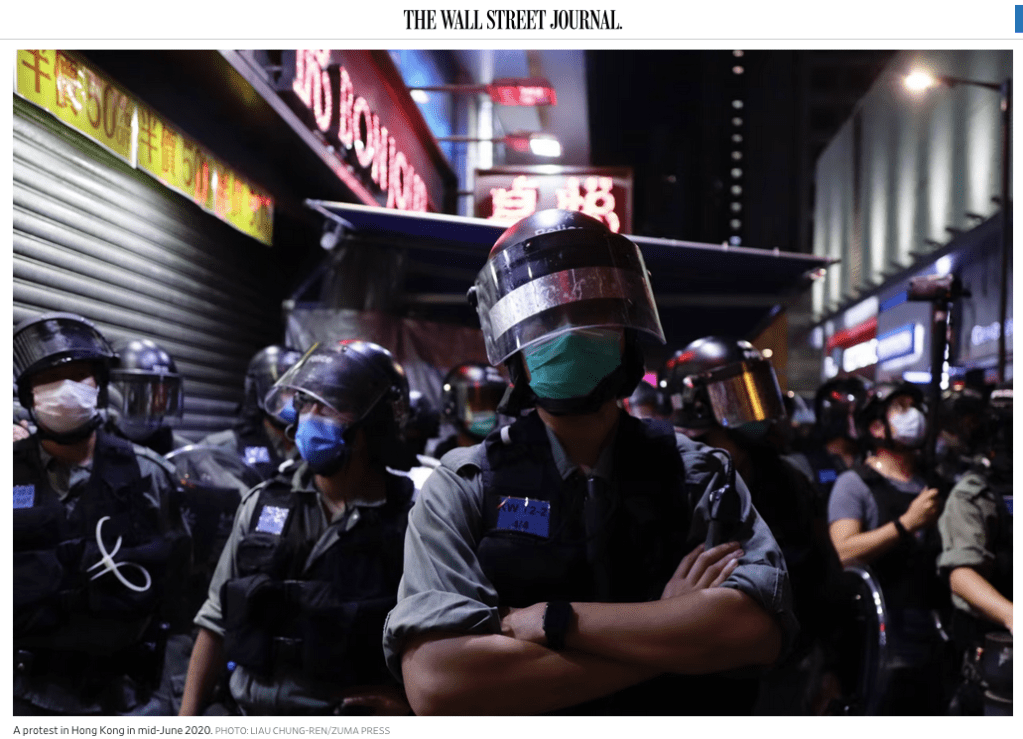 June 12, 2020, Hong Kong, China: A Riot Police officer crosses his elbows rejecting protesters and medias from advancing during a citizens demonstration to commemorate the first anniversary of the Anti-Extradition Law Protest. (Credit Image: © Liau Chung-ren/ZUMA Wire)