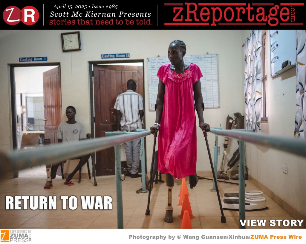 Scott Mc Kiernan Presents zReportage.com Issue #985 Story of the Week: Published TUESDAY April 15, 2025: ‘RETURN TO WAR’ by ZUMA Partner agency Xinhua photo-journalist Wang Guansen: Rising tensions in the east African country of South Sudan, culminating in the 26 March arrest of Vice-President Riek Machar, have sparked concerns that the world’s youngest nation is heading for another civil war. Tuesday marked the two-year anniversary of what the United Nations says is the world’s largest humanitarian crisis: the Sudanese civil war. Now neighboring South Sudan has once again returned to the brink of war. The country recently made headlines after members of an ethnic militia attacked a U.N. helicopter, killing 28 people. Nicholas Haysom, head of the UN mission in South Sudan, has warned the country is ”teetering on the brink of a return to full-scale civil war”, which would devastate the nation that is still dealing with the aftermath of the last conflict. Welcome to ‘RETURN TO WAR’