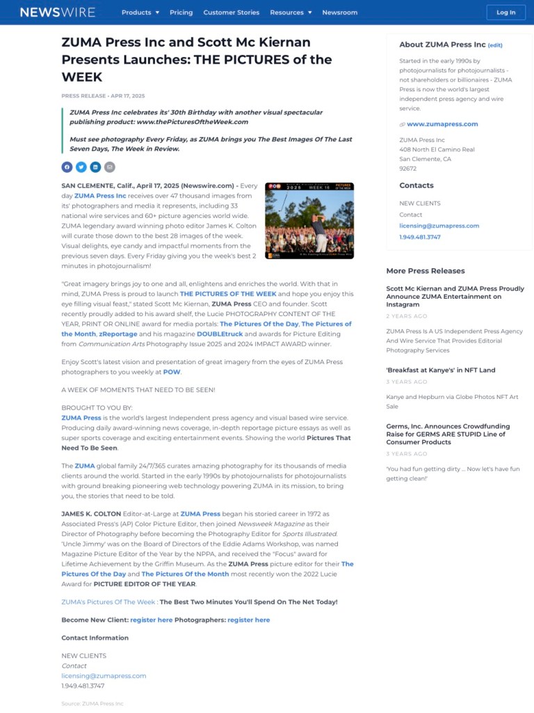 Scott Mc Kiernan, Founder & Editor-in-Chief, ZUMA Press