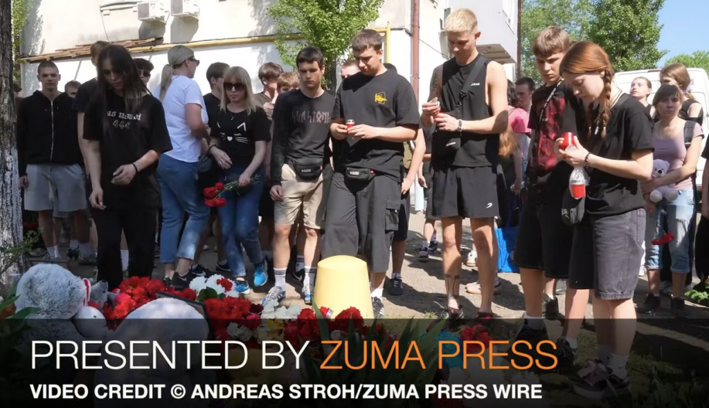 April 25, 2025, Kyiv, Kyiv City, Ukraine: Students and friends mourn their killed classmates a day after a deadly Russian missile attack on Kyiv, killing 12, including 3 children.