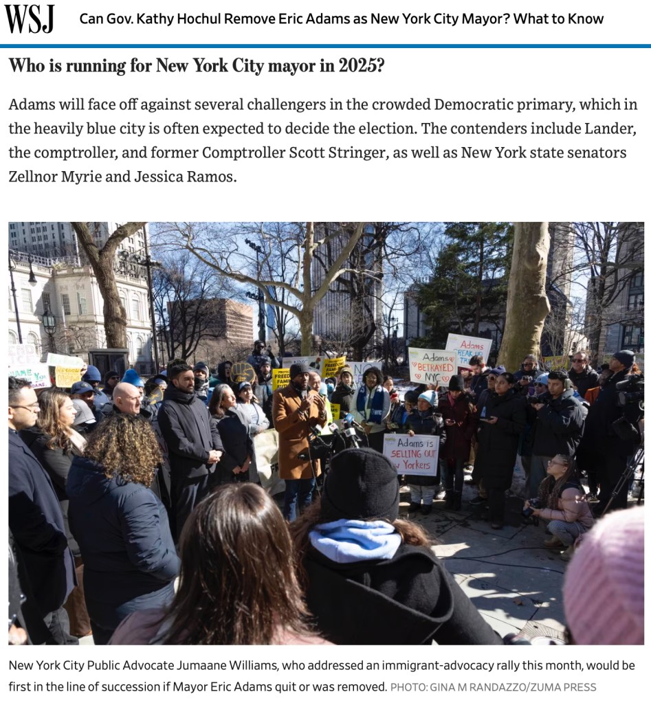 February 14, 2025, New York, New York, USA: New York City Public Advocate JUMAANE WILLIAMS addresses rally attendees. Immigrant advocacy organizations and elected officials hold a rally in City Hall Park denouncing Mayor Adams continued collaboration with the Trump administration’s immigration policies. After meeting again with Trump’s Border Czar T. Homan this week the Mayor announced that he will allow ICE agents at Rikers jail complex. Rally organizers cite the Justice Department’s order to dismiss Adams’ bribery case as an exchange for the Mayor’s aggressive and illegal cooperation with I.C.E entering schools, hospitals and Rikers. Speakers call for the Mayor’s resignation. The rally is organized by Make the Road Action, Working Families Party and other advocacy groups. (Credit Image: © Gina M Randazzo/ZUMA Press Wire)