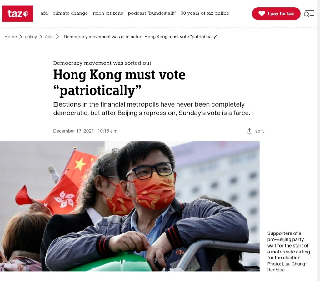 December 16, 2021, HONG KONG, CHINA: A Pro-Beijing supporters with red facemarks with printed words : BUILD HK TOGETHER on the double-decker bus at the rally before they depart for a car-parade. (Credit Image: © Liau Chung-ren/ZUMA Press Wire)