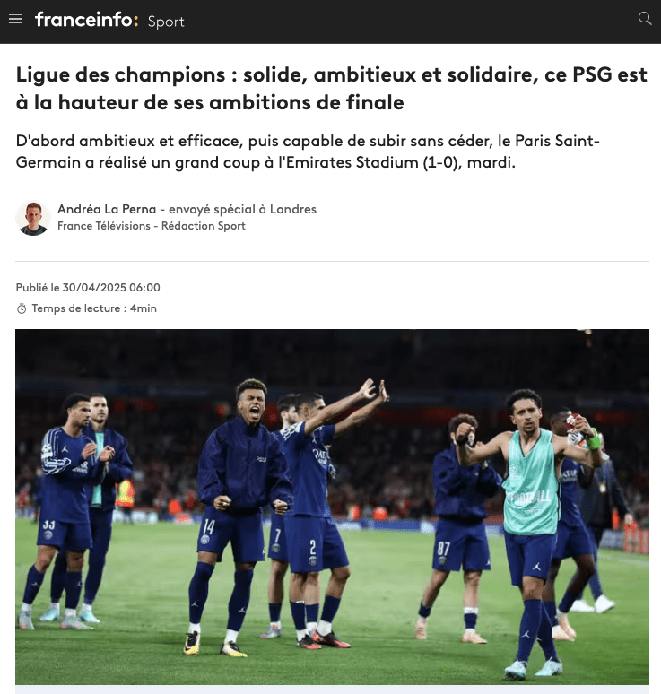 April 29, 2025, London, United Kingdom: PSG players of which DESIRE DOUE and captain MARQUINHOS celebrate with their fan after their win in the UEFA 2024/25 Semi-Final first leg game against ARSENAL at the Emirates Stadium in London, England (Credit Image: © Mickael Chavet/ZUMA Press Wire)