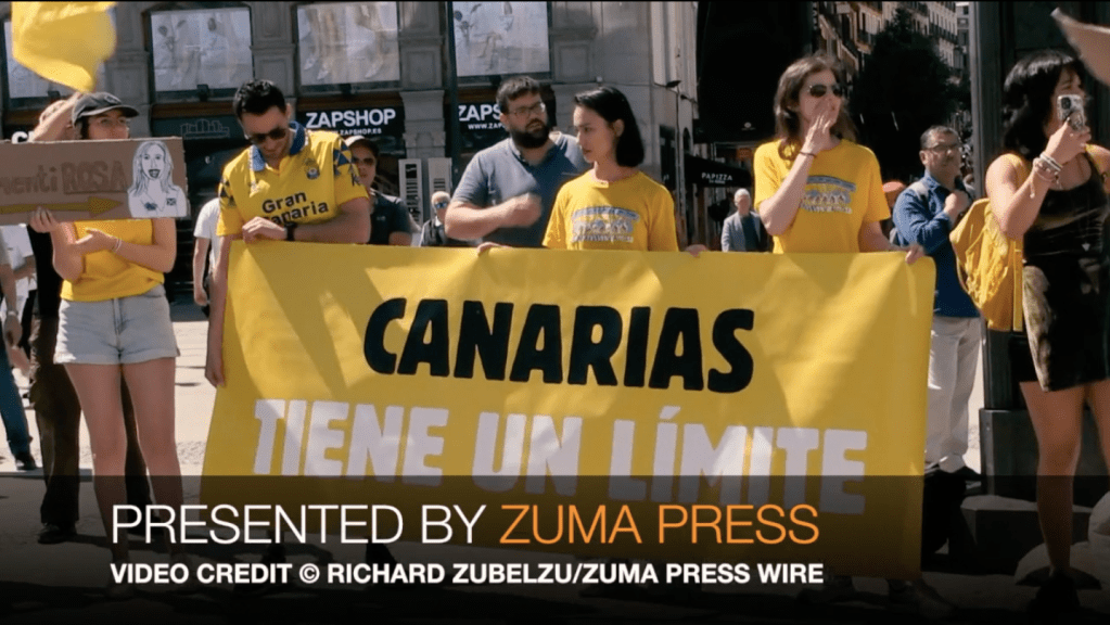 May 18, 2025, Madrid, Madrid, SPAIN: Canarian residents in Madrid protest against mass tourism in the Canary Islands.