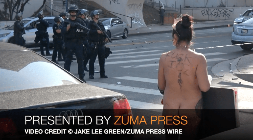 June 8, 2025, Los Angeles, California, USA: Multiple demonstrators protesting ICE raids on June 08, 2025, throughout the city and county of Los Angeles were injured from less-lethal munitions deployed by LAPD who attempted to clear roadways. One man was shot in the face with a 40mm less-lethal round and a woman had her left hand ring finger torn apart.