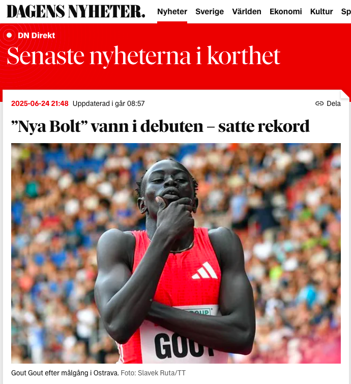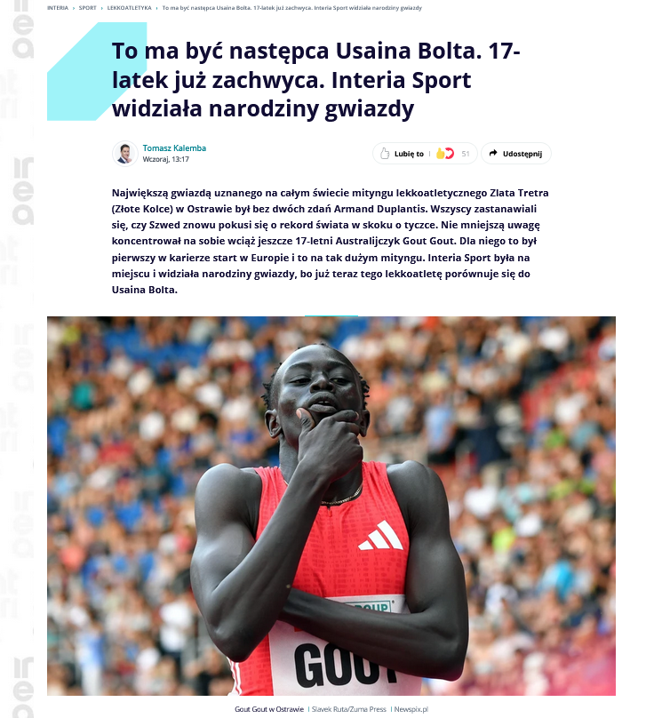 June 24, 2025, Ostrava, Czech Republic: GOUT GOUT of Australia competes 200 Metres Men at the World Athletics Continental Tour Golden Spike event in Ostrava in the Czech Republic. The 17-year-old prodigy breaks own Australian 200m record at Golden Spike meeting in Ostrava as time of 20.02. (Credit Image: © Slavek Ruta/ZUMA Press Wire)