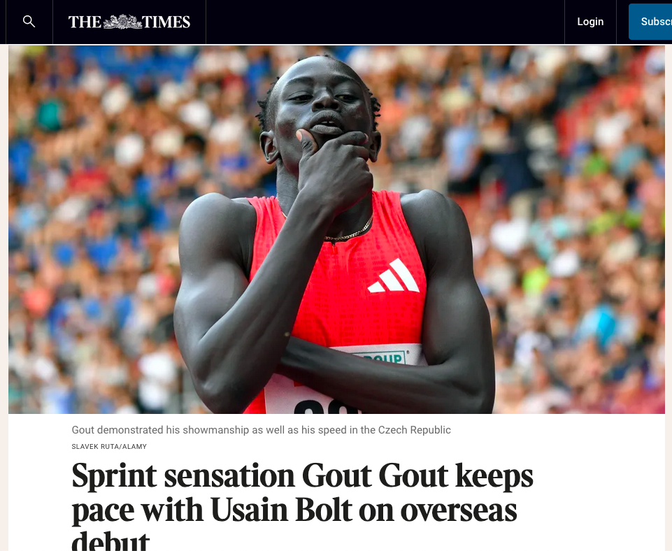 June 24, 2025, Ostrava, Czech Republic: GOUT GOUT of Australia competes 200 Metres Men at the World Athletics Continental Tour Golden Spike event in Ostrava in the Czech Republic. The 17-year-old prodigy breaks own Australian 200m record at Golden Spike meeting in Ostrava as time of 20.02. (Credit Image: © Slavek Ruta/ZUMA Press Wire)