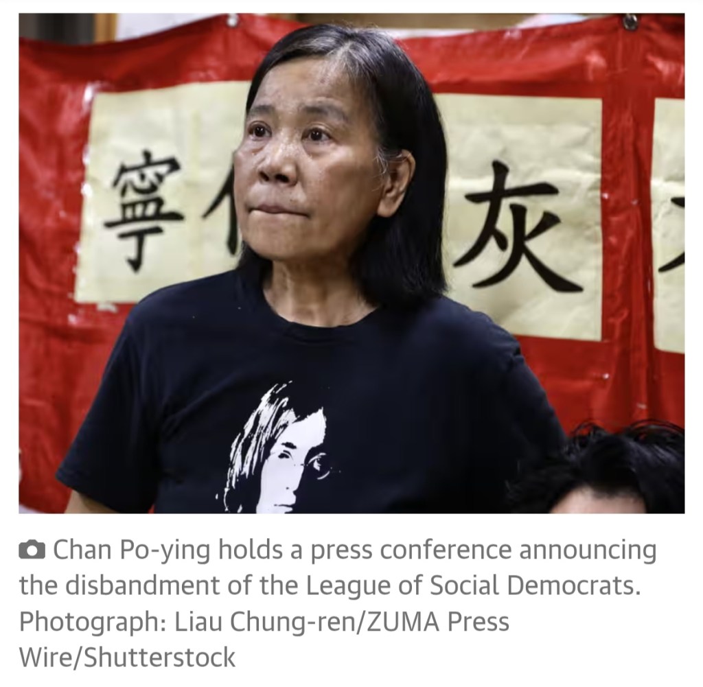 June 29, 2025, China, HONG KONG: Chan Po-ying, a current Chairman, wife of Leung Kwok-hung ( nicknamed : Long Hair ) and the last leader of LEAGUE OF SOCIAL DEMOCRATS at the press conference this afternoon officially announcing disbandment of League of Social Democrats. (Credit Image: © Liau Chung-ren/ZUMA Press Wire)