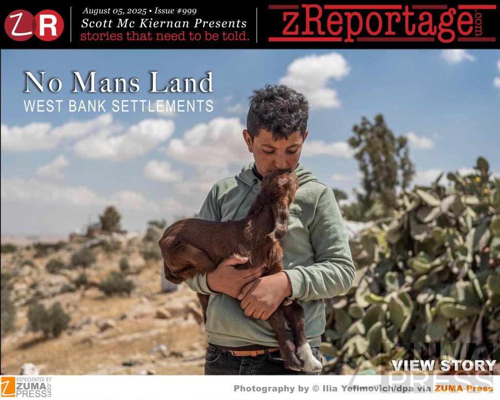 Scott Mc Kiernan Presents zReportage.com Issue #999 Story of the Week: Published TUESDAY August 5, 2025: ‘No Mans Land: WEST BANK SETTLEMENTS’ by ZUMA Press award winning dpa photo-journalist Ilia Yefimovich: Palestinian communities are being displaced and dispersed across the occupied West Bank as settler violence, backed by Israeli authorities, forces families from their land. One community has already been emptied. The International Court of Justice recently declared Israel’s occupation of Palestinian territory illegal and called for the evacuation of all settlements in the West Bank and East Jerusalem. The UN also considers all Israeli settlements in occupied Palestinian territory illegal and has repeatedly warned that their expansion erodes the viability of a two-state solution. Since the start of Israel’s current war on the Gaza Strip, launched in response to Hamas deadly cross border attack, at least 1,013 Palestinians have been killed and more than 7,000 injured in the West Bank by Israeli forces and illegal settlers. The UN has recorded an average of four settler attacks per day in 2025. In many cases, Israeli forces are present during the attacks and fail to intervene. Settler violence, the spread of illegal outposts are rendering life unviable for Palestinians. Welcome to ‘No Mans Land: WEST BANK SETTLEMENTS’