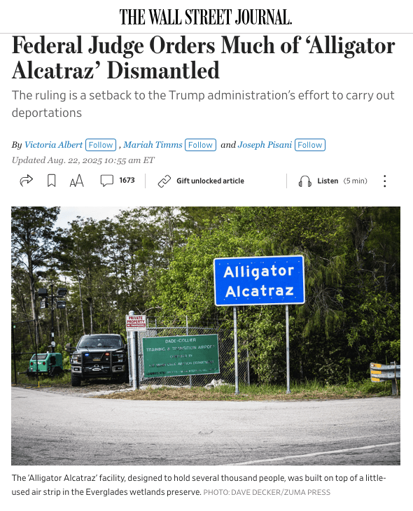August 3, 2025, Ochopee, Florida, USA: The entrance of the facility named ‘Alligator Alcatraz’ as leaders of faith groups from across the state of Florida gathered for a vigil at the detention center. The groups arrived to hold space and pray for the detainees whom have been affected by hunger strikes and a variety of other environmental and human rights issues. (Credit Image: © Dave Decker/ZUMA Press Wire)