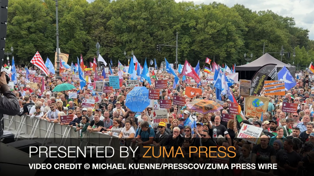 A pro-Palestinian protest took place at the Brandenburg Gate on September 13, 2025. At least 12,000 people gathered for a protest against Israel’s war in Gaza, rallying under the slogan “Stop the genocide in Gaza.” The protest was called by Sahra Wagenknecht, founder of the Buendnis Sahra Wagenknecht (BSW) party, and drew several well-known German figures, including veteran actor and comedian Dieter Hallervorden, rapper Massiv, television host Daniel Aminati, and musician Bausa. Former Pink Floyd co-founder Roger Waters addressed the crowd in a video message. Rock singer Peter Maffay had supported the call but did not appear in person. Wagenknecht told the rally that “every war is a crime,” condemning the Oct. 7, 2023, Hamas attacks that killed more than 1,200 in Israel, while accusing Israel of indiscriminate bombing and blockade of Gaza. Hallervorden called for “peace instead of grenades,” and Aminati described Israel’s actions as genocide while also noting the plight of Israeli hostages still held by Hamas. Many participants waved Palestinian flags and carried placards demanding an end to weapons deliveries to conflict zones. Across Pariser Platz, on the opposite side of the Brandenburg Gate, about two dozen people held a pro-Israel counter-demonstration. They displayed Israeli flags and banners reading “Solidarity instead of hate, against all antisemitism.” Supporters also laid flowers and displayed photos in memory of recent victims, including American activist Charlie Kirk, who was fatally shot at Utah Valley University this week, and Iryna Zarutska, a Ukrainian refugee killed in a stabbing attack in Charlotte, North Carolina, last month. Police said the Berlin protests were largely peaceful, with about 1,000 officers deployed. Organizers had expected as many as 15,000 demonstrators. Israel rejects accusations of genocide and says its campaign in Gaza is aimed at dismantling Hamas, the militant group that carried out the Oct. 7 massacre.