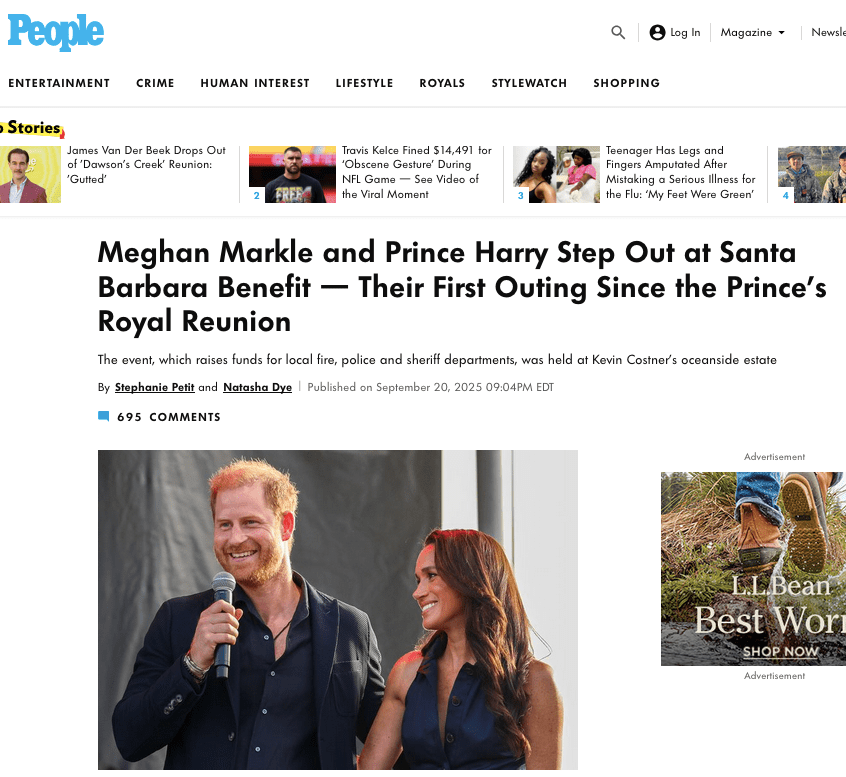 September 20, 2025, Santa Barbara, California, USA: PRINCE HARRY and PRINCESS MEGHAN, the Duke and Duchess of Sussex, took the stage at One805 Live Concert at movie star Costner’s Santa Barbara oceanfront estate in Summerland, California, where Harry was about to give out the ‘Heart of the Community’ Awards. One805.org is a multi-million-dollar fundraiser supporting mental health for Santa Barbara County’s first responders. (Credit Image: © Amy Katz/ZUMA Press Wire)