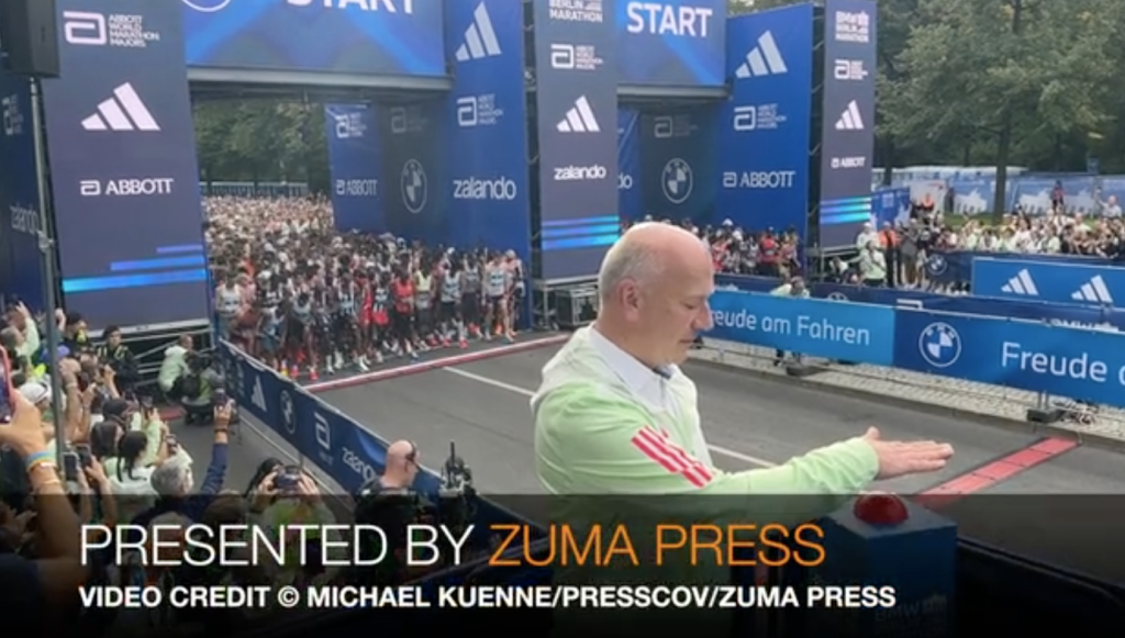 Berlin Mayor Kai Wegner presses the red buzzer to signal the start of the Berlin Marathon on Sunday, September 21, 2025. The Berlin Marathon took over the German capital on Sunday, September 21, 2025, as tens of thousands of runners from around the world pounded the streets in the race’s 51st edition. Organizers said participants came from more than 160 countries. Kenya’s Sabastian Sawe won the Berlin Marathon .