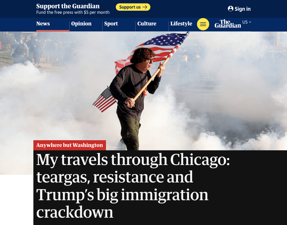 September 19, 2025, North Chicago, Illinois, USA: CURTIS EVANS, of Evanston, carries a U.S. flag through gas deployed by federal officers as they clear protesters from the entrance of the Immigration and Customs Enforcement facility in Broadview. Evans said he was a Marine during President Ronald Reagan’s term. Protesters and agents clashed outside the Broadview ICE processing center during a 12-hour protest Friday. Federal agents fired chemical agents at protesters outside the ICE processing facility. (Credit Image: © Stacey Wescott/Chicago Tribune via ZUMA Press Wire)