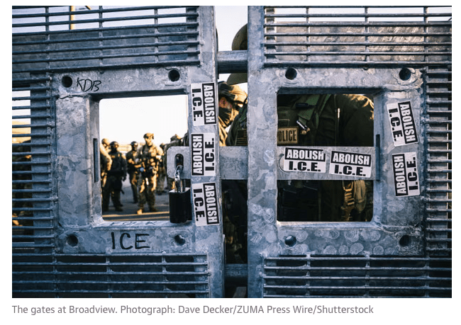 September 27, 2025, Broadview, Illinois, USA: Militarized agents for the United States Immigration and Customs Enforcement (I.C.E.) aka ICE lock a gate and move in with force to quell protestors as the Broadview facility’s role has changed dramatically with the start of ‘OPERATION MIDWAY BLITZ’ which is the central processing facility for the operation and is scheduled to operate for 7 days a week for 45 days. (Credit Image: © Dave Decker/ZUMA Press Wire)