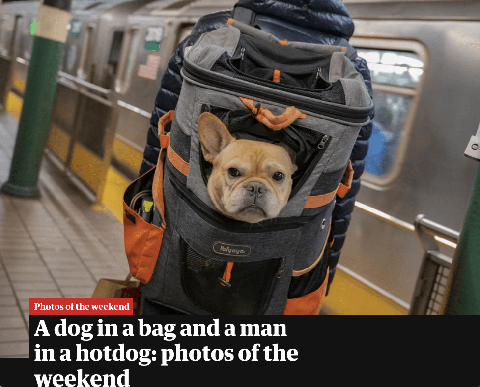 November 1, 2025, New York, New York, USA: A French bulldog travels in style in his owners backpack on the Number 6 subway train in New York. With a cool and calm attitude, the dog seemed to be taking his commute in stride. (Credit Image: © Milo Hess/ZUMA Press Wire)