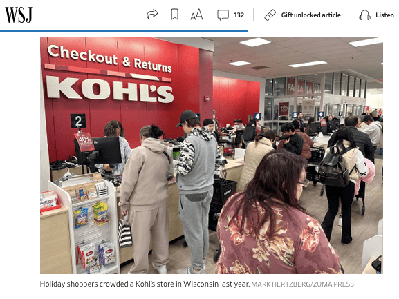 December 15, 2024, Mount Pleasant, Wisconsin, USA: Shoppers check out in long lines at the Kohl’s department store in the Village of Mount Pleasant, Wisconsin Sunday December 15, 2024. On November 26 Kohl’s announced lower sales for the third quarter and a sales decrease of 9.3% from last year. It was announced November 25 that CEO Tom Kingsbury will step down in January. (Credit Image: © Mark Hertzberg/ZUMA Press Wire)
