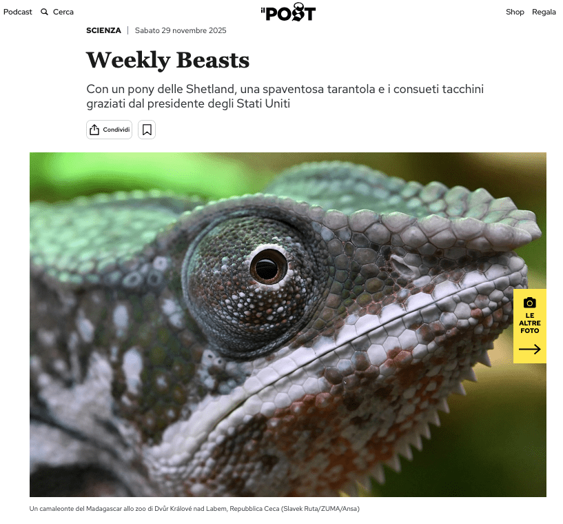 November 26, 2025, Dvur Kralove Nad Labem, Czech Republic: Chameleon sits on a tree branch and looks around. Panther chameleon (Furcifer pardalis) at Safari Park in Dvur Kralove nad Labem in the Czech Republic. (Credit Image: © Slavek Ruta/ZUMA Press Wire)